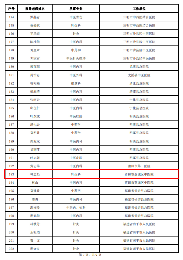 林志坚主任入选我省老中医药专家指导老师