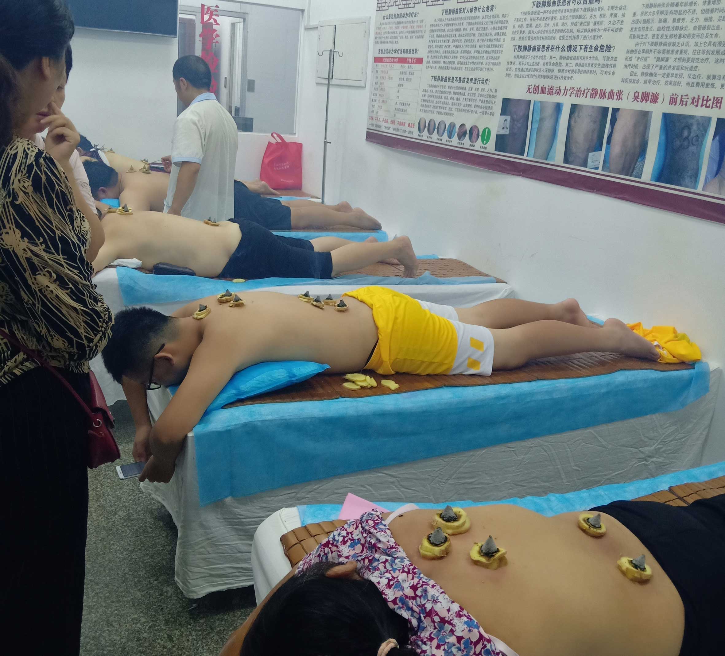 (临时治疗室内艾香袅袅,患者直接到床位前排队)